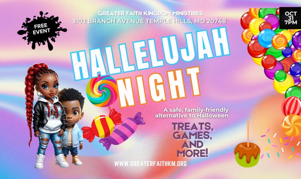 Every October 31st, Greater Faith Kingdom Ministries hosts Hallelujah Night—a safe, fun-filled alternative to Halloween for the entire family! It's one of our most exciting annual events, designed to shine the light of Christ while creating unforgettable memories for kids and parents alike.
